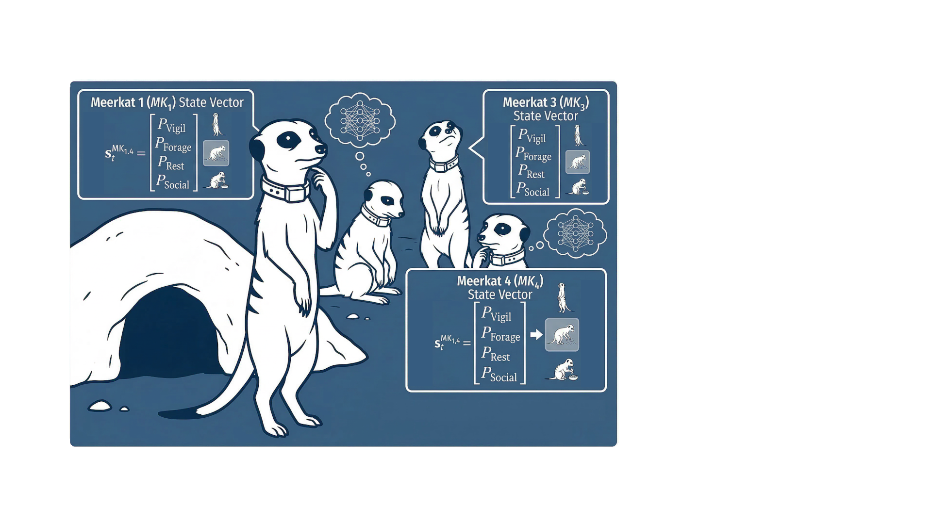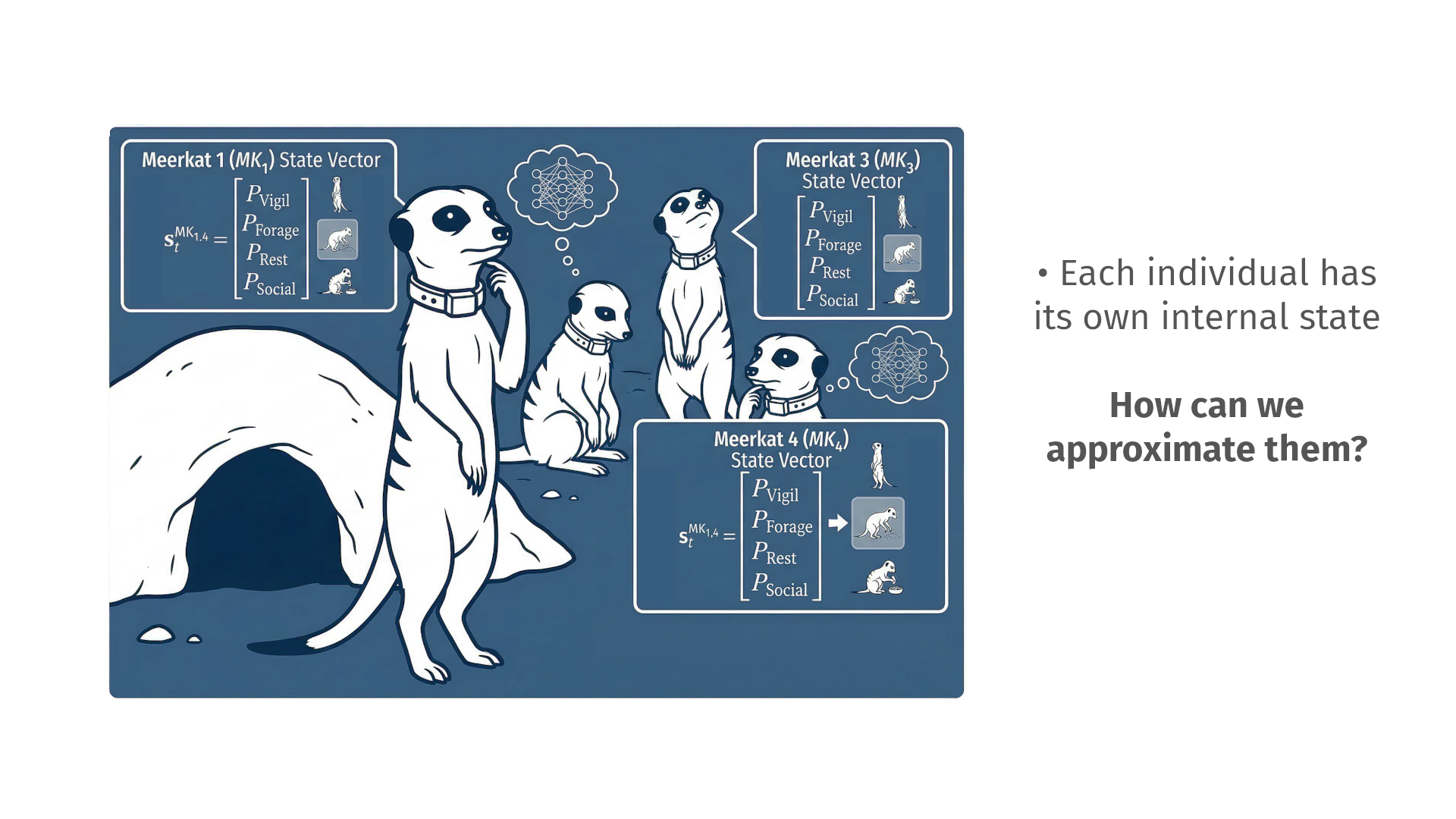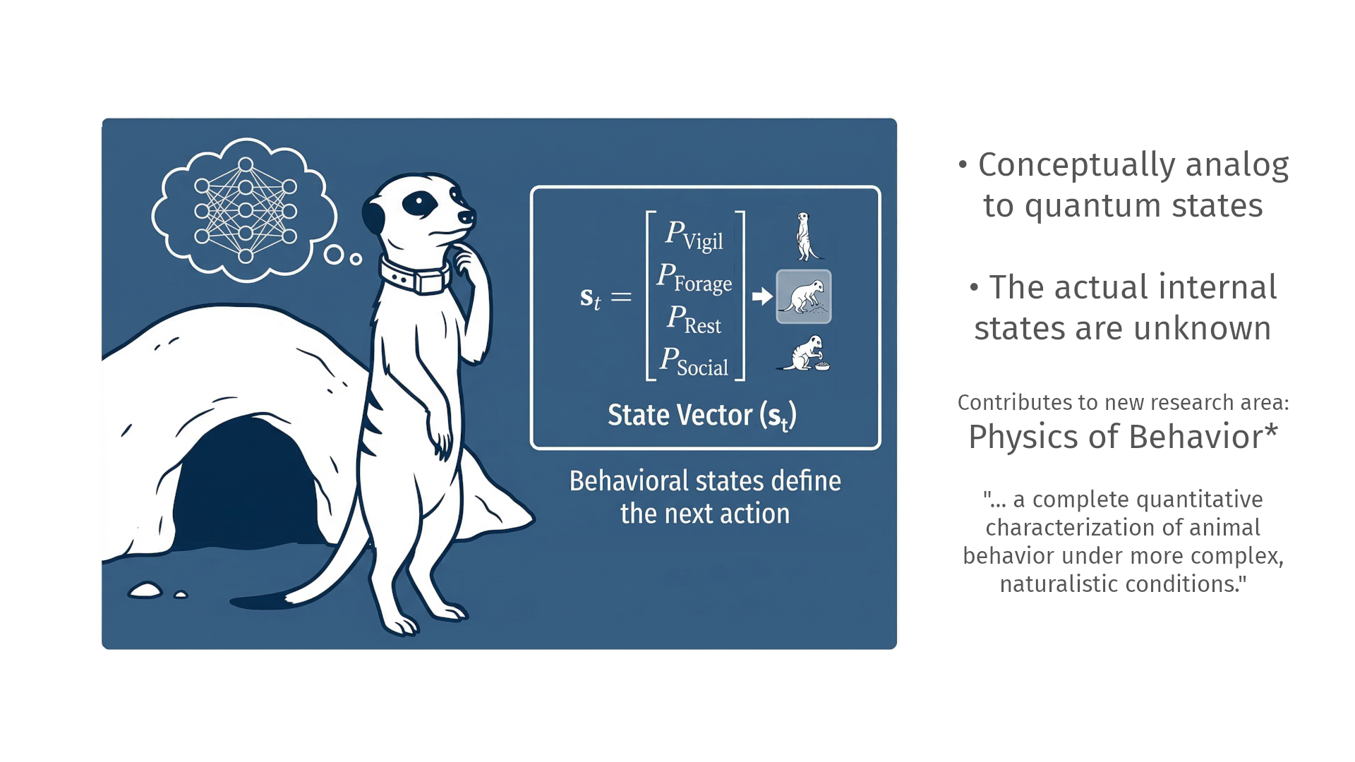 My research focuses on understanding the internal drivers of animal behavior directly from multimodal data. I model the dynamics of entire animal groups using an approach that renders these internal states visible.